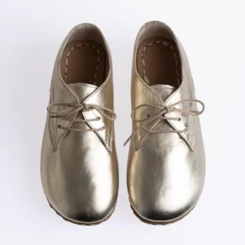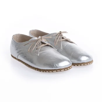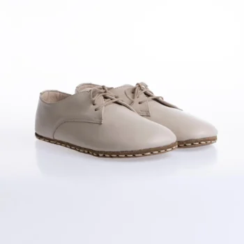 Minimalist leather Oxford with grounding copper rivets, wide toe box, zero-drop sole, and natural barefoot comfort for everyday wear.