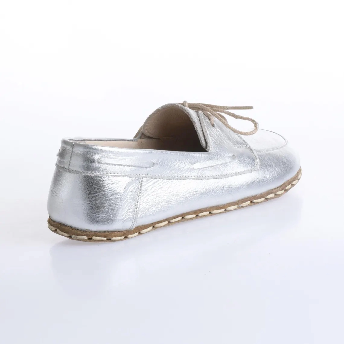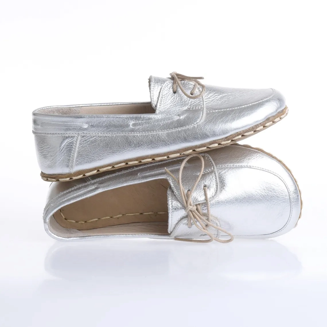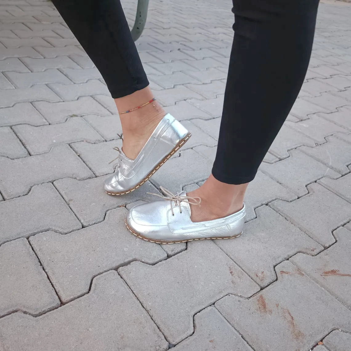 Women’s Silver Barefoot Earthing Moccasin With Laces