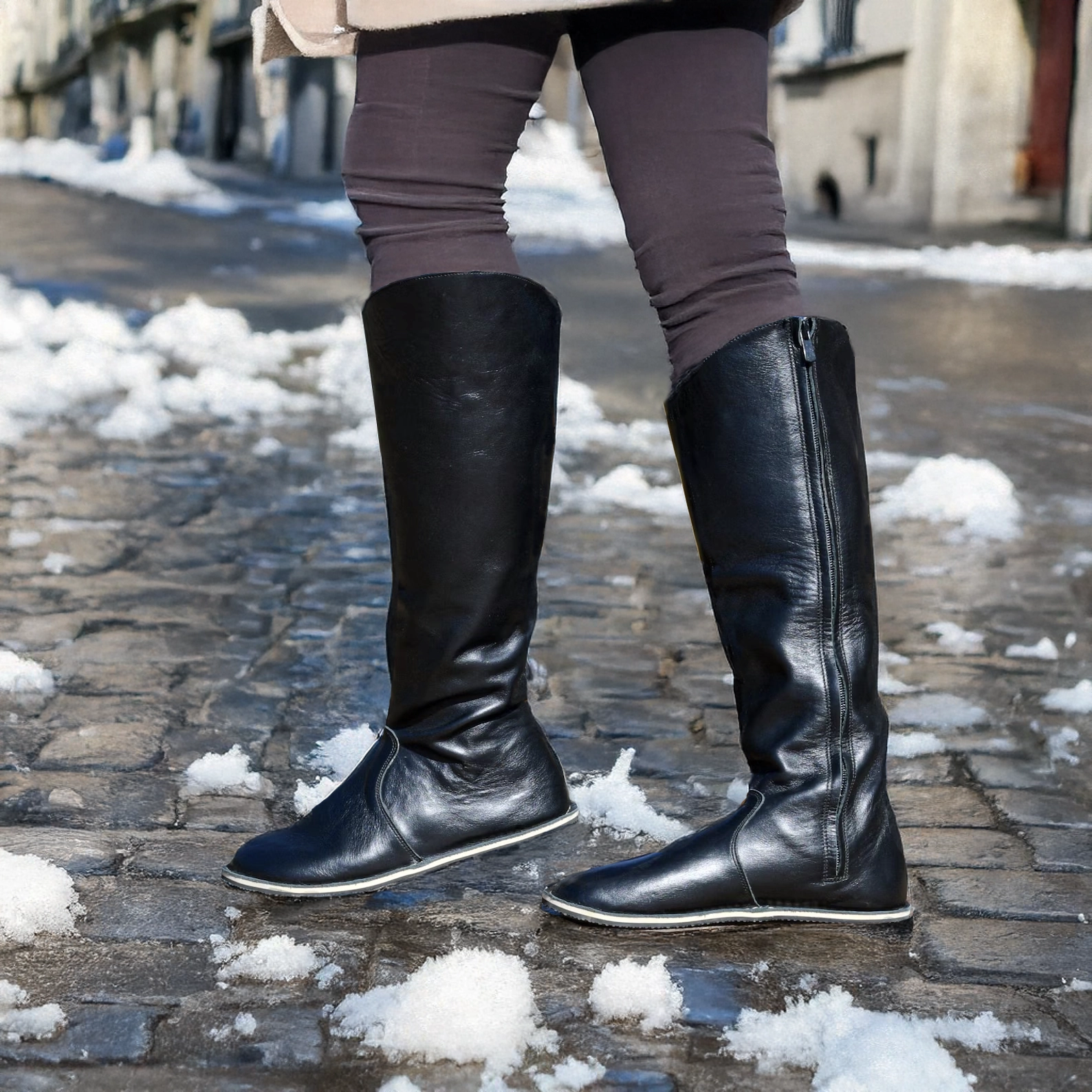 Step into style and comfort with our Black Genuine Leather Barefoot Knee High Boots. Crafted from high-quality leather, these boots offer a sleek look while providing the freedom your feet crave. Perfect for any occasion, their minimalist design pairs effortlessly with various outfits. The barefoot style enhances natural movement, making them ideal for daily wear or special outings. Elevate your footwear collection today with these chic long boots that blend fashion and functionality beautifully!