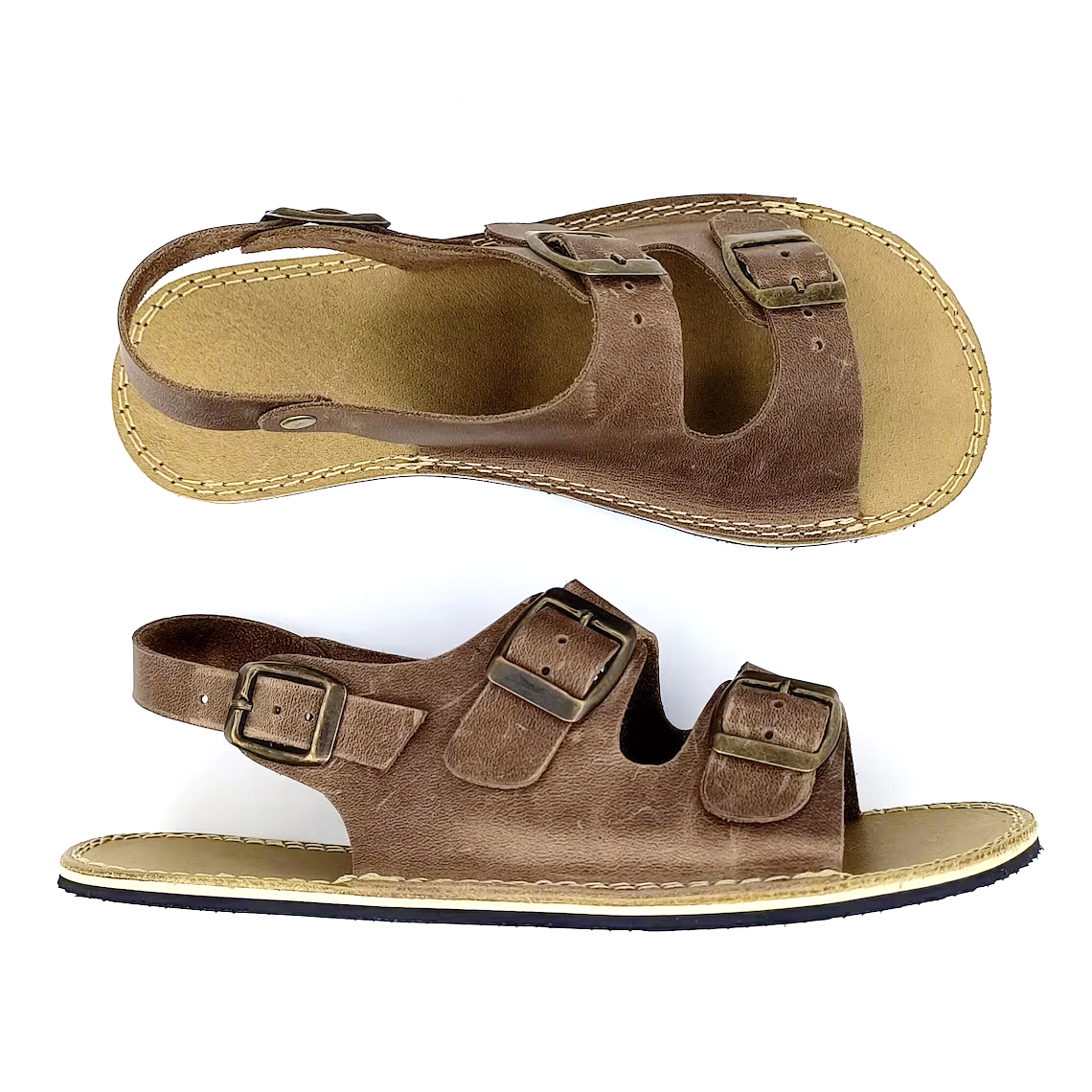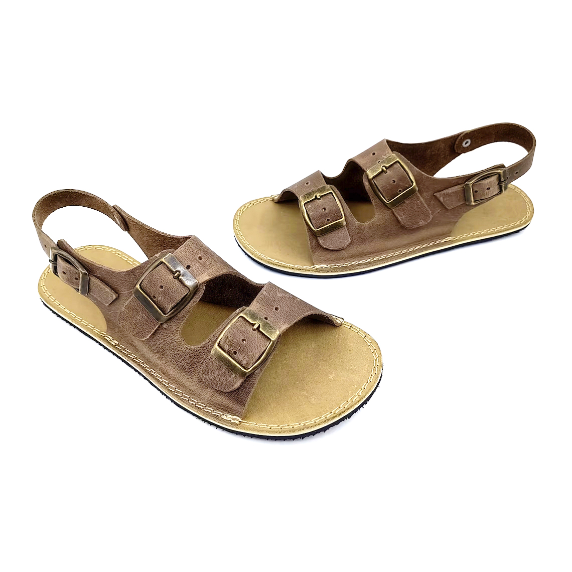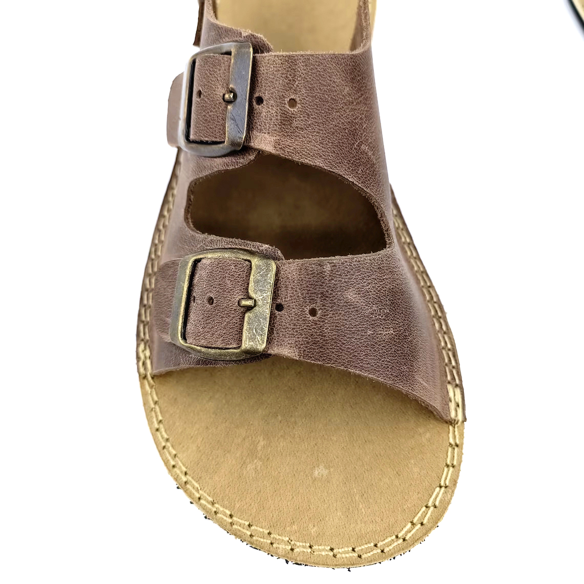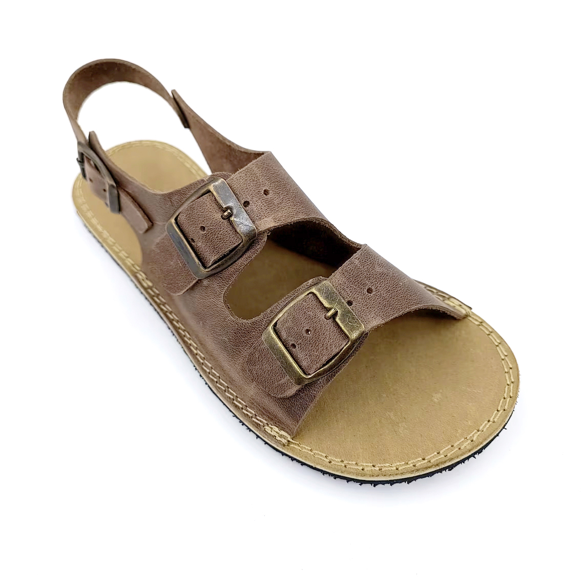 Women’s mink color double buckle barefoot sandals designed for natural comfort, flexible movement, and everyday wear. Ideal for city walks and summer use.