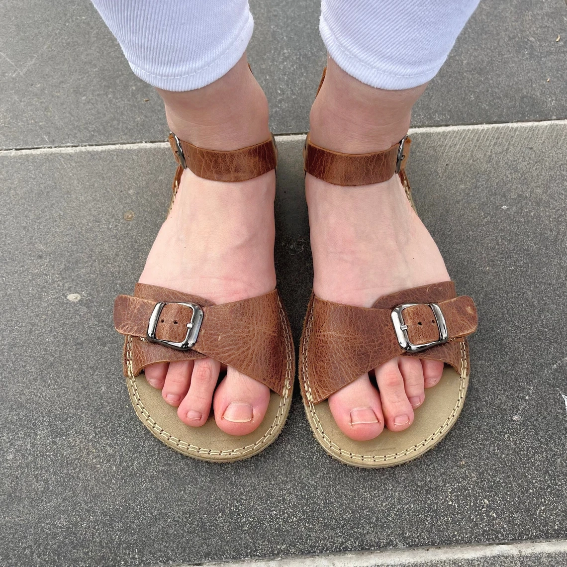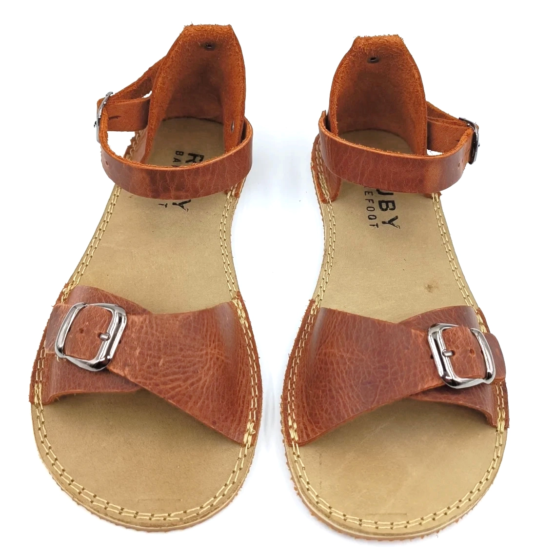 Brown leather barefoot sandals are made of genuine leather. It has a wider toe box for your toes to be comfortable. Thanks to the zero drop rubber sole, it provides the right posture for your body. Thanks to the soft rubber sole, they are the most comfortable sandals while walking and in the holiday. Ruby barefoot sandals have narrow heels wide toe box compared to standard barefoot sandals.