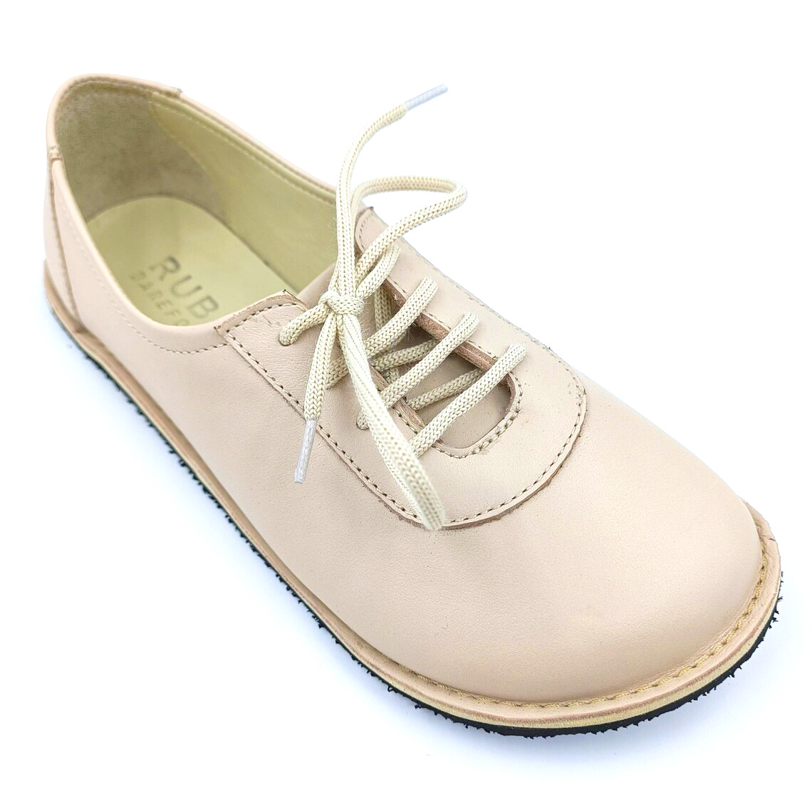 Barefoot Minimalist Women Beige Color Leather Sneakers, Rubber Sole