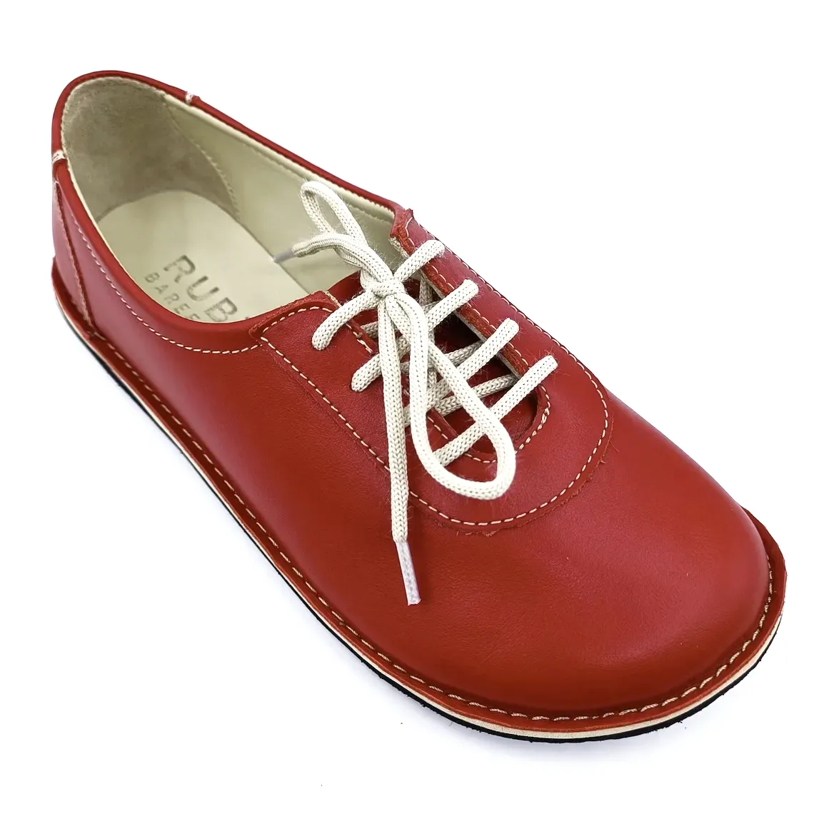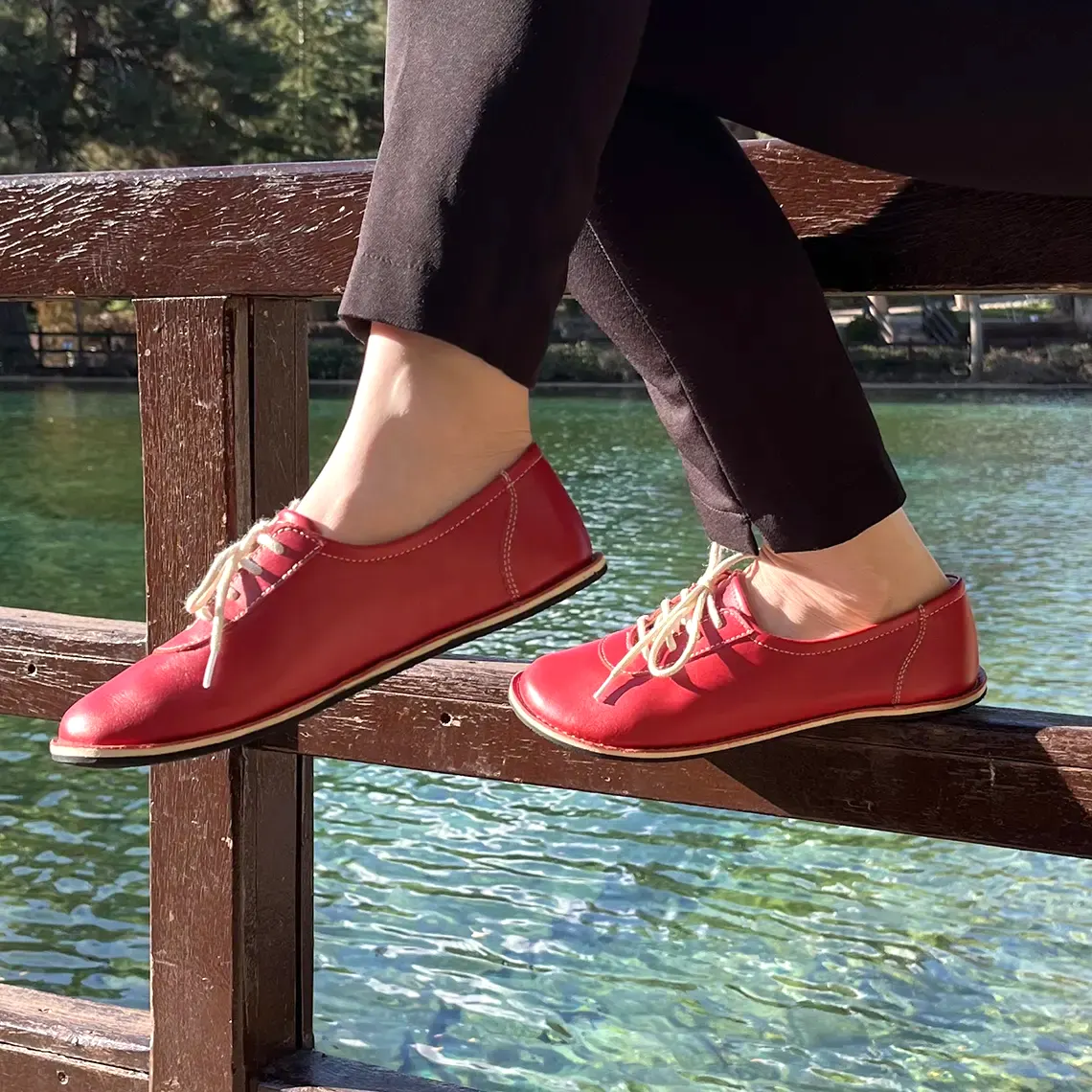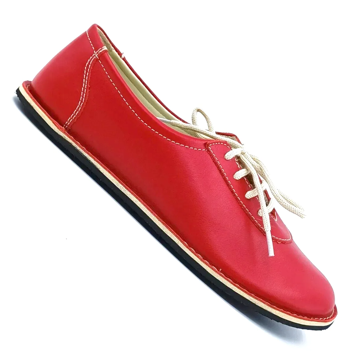 Red Color Leather Barefoot Minimalist Women Sneakers, Rubber Sole