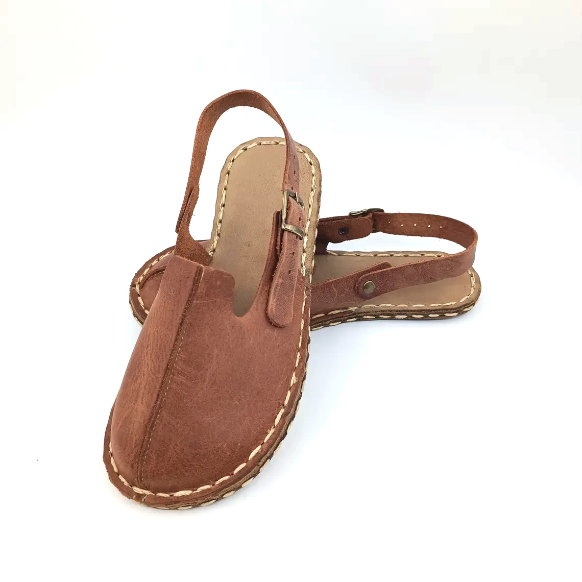 Discover the ultimate in eco-friendly footwear with our Sustainable open-back closed-toe Barefoot Sandals for women. Expertly crafted from rich Brown leather, these minimalist sandals seamlessly blend style and function. The unique copper grounding reinforces your connection to the earth, promoting health and balance with every step.