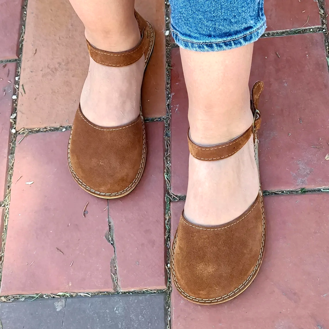Lightweight yet durable, the suede upper gently hugs your foot, reducing friction and enhancing all-day comfort. Adjustable straps ensure a secure, personalized fit, making them ideal for long walks, casual wear, or mindful lifestyles focused on wellness and grounding.