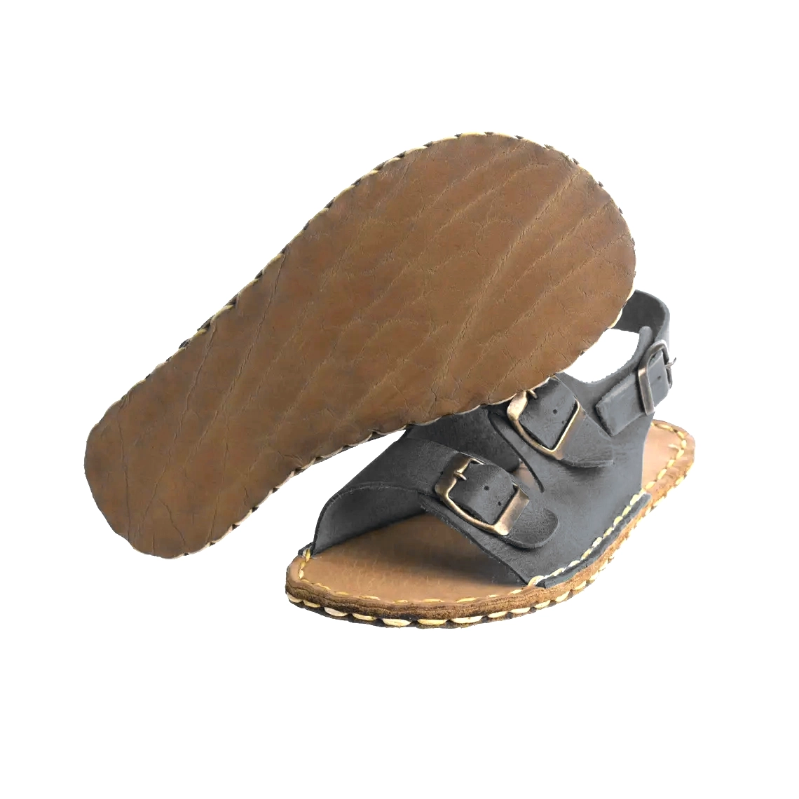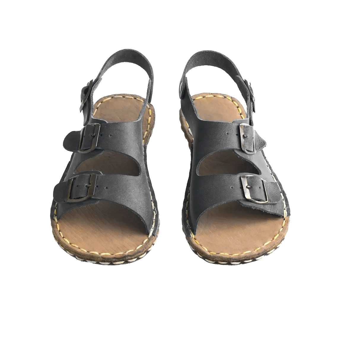 Black Barefoot Earthing Double Buckle Sandals