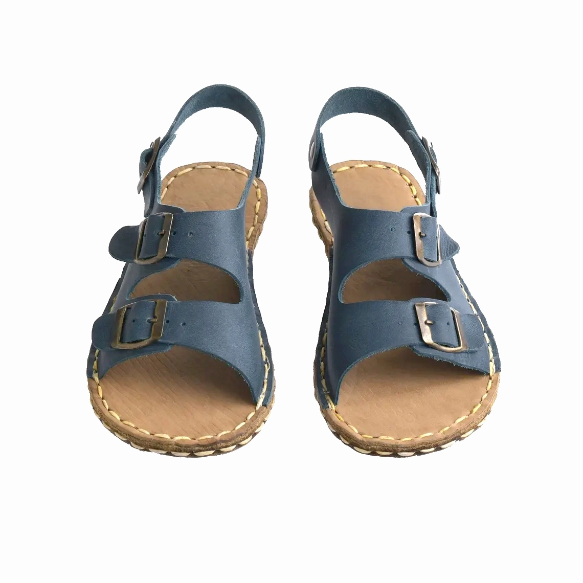 Grounding Barefoot Navy Blue Sandals Double Buckle