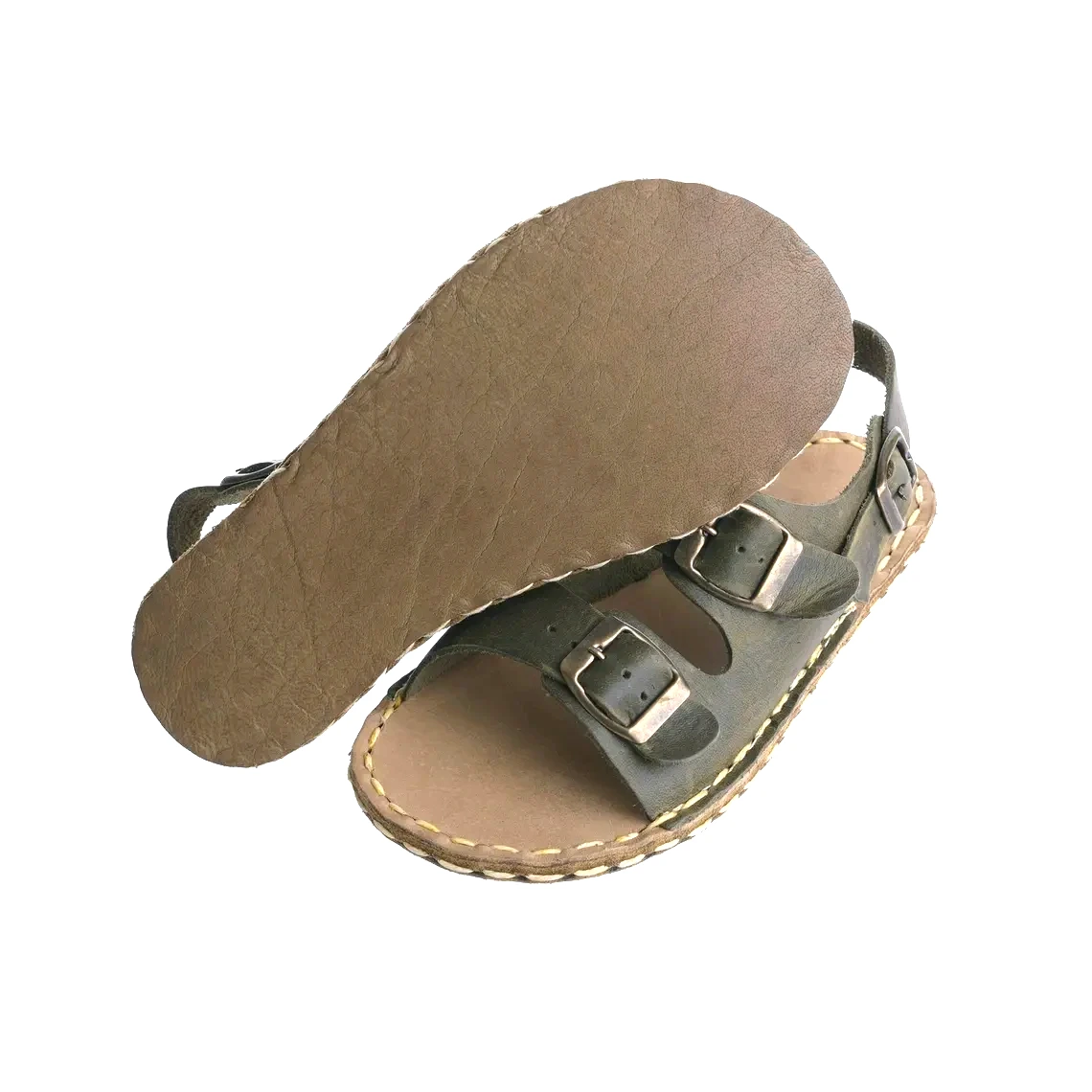 Olive Green Barefoot Earthing Double Buckle Sandals