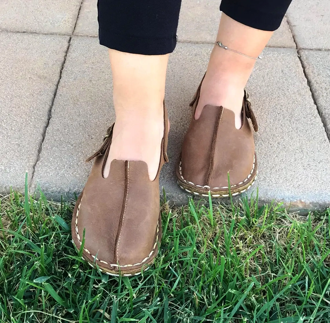 Tan color women’s barefoot yemeni shoes are made of genuine leather. It has a wide toe box for your toes to be comfortable. Thanks to the zero drop leather sole, it provides the right posture for your body.