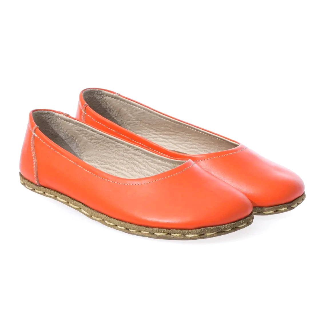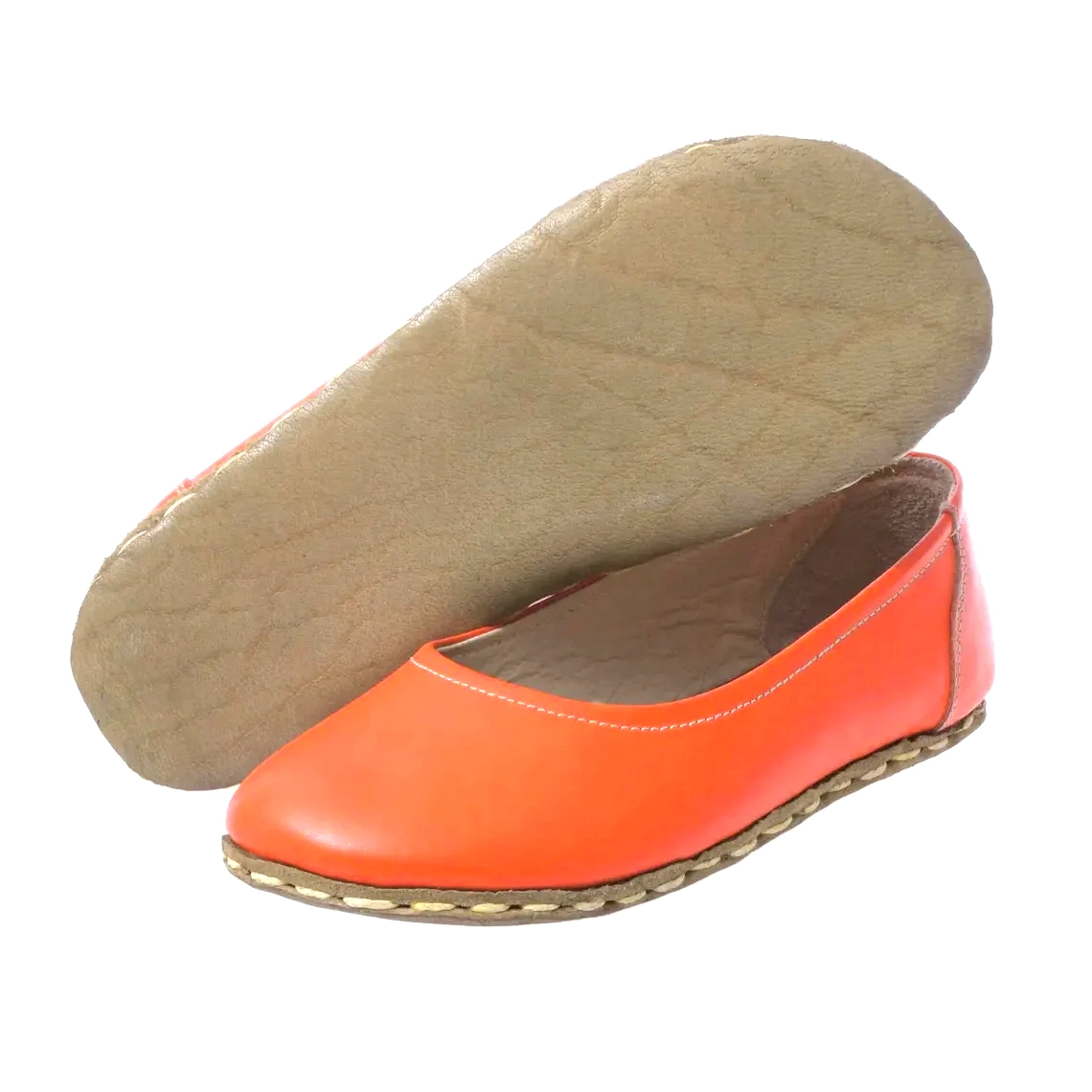 Step into bold color and true barefoot comfort with these Handmade Orange Leather Earthing Barefoot Ballet Flats. Designed for women who want minimalist style without sacrificing natural foot movement, these flats use a thin, flexible sole and a wide toe box to let your feet spread and flex naturally—just as they would when barefoot.