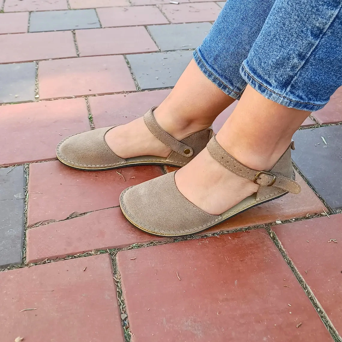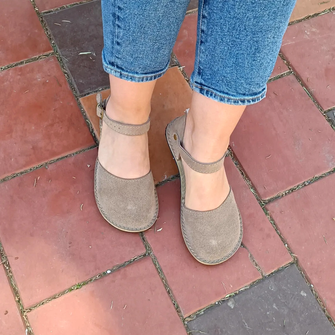 Barefoot Taupe Color Suede Minimalist Women Sandals