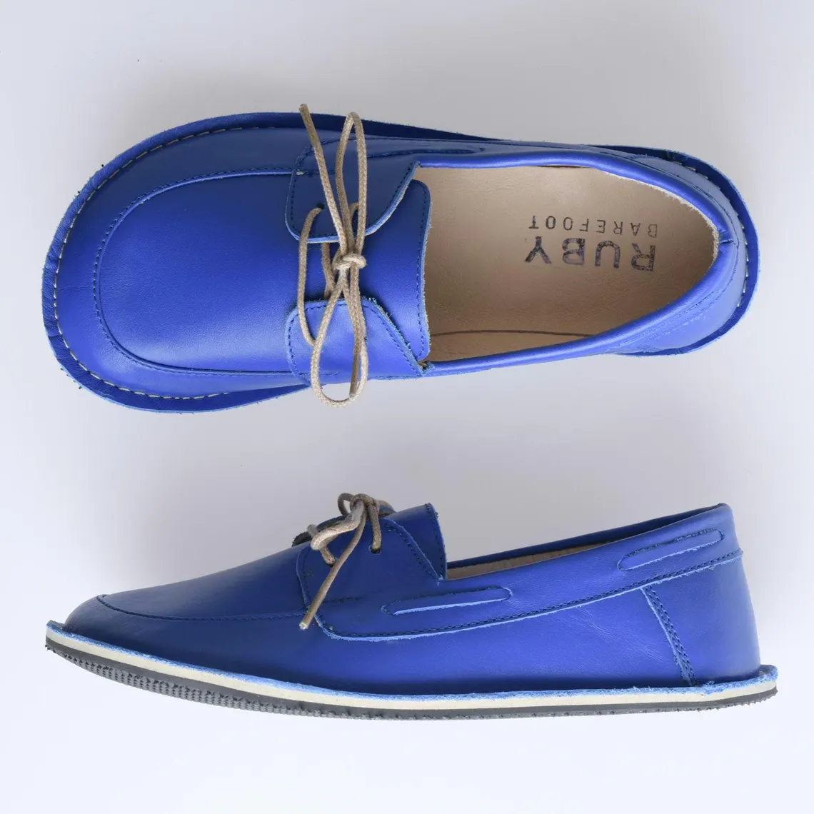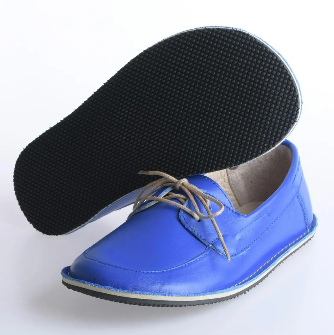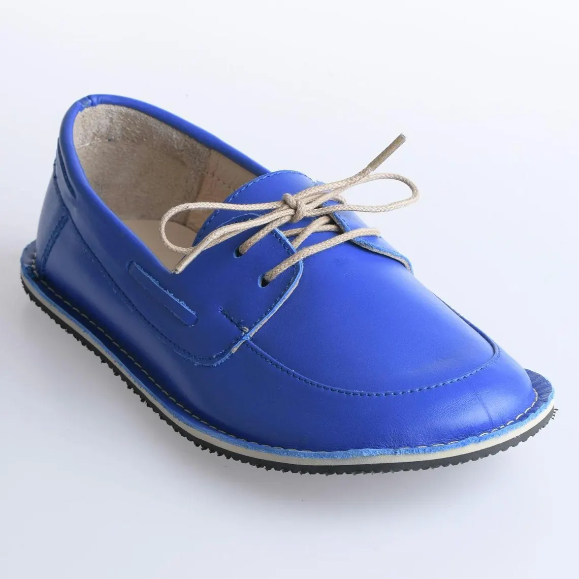 Blue color barefoot boat moccasins are made of genuine leather. It has a wide toe box for your toes to be comfortable. Thanks to the zero drop rubber sole, it provides the right posture for your body.