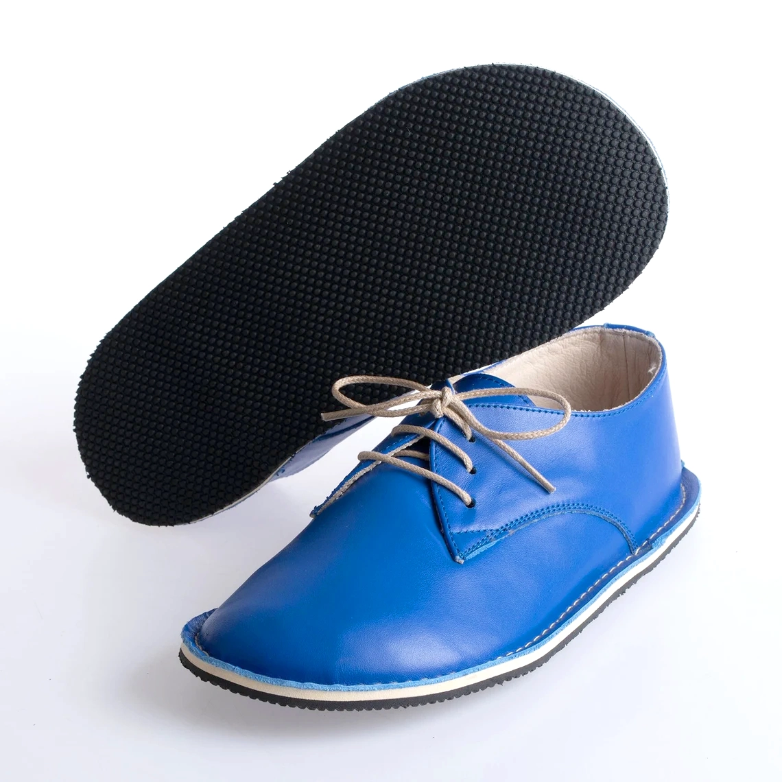 Women’s Barefoot Lace-Up Oxford Shoes – Blue Color Leather