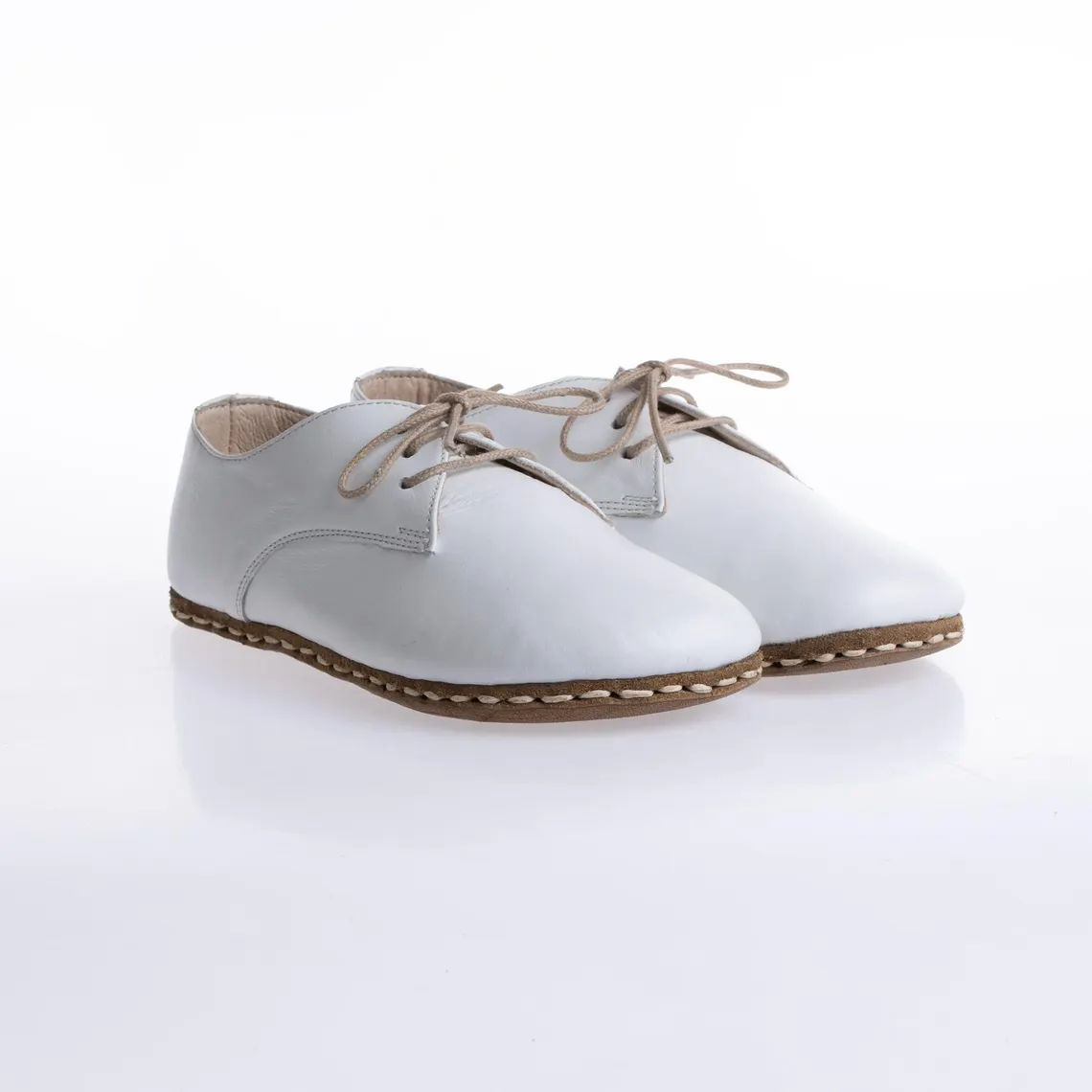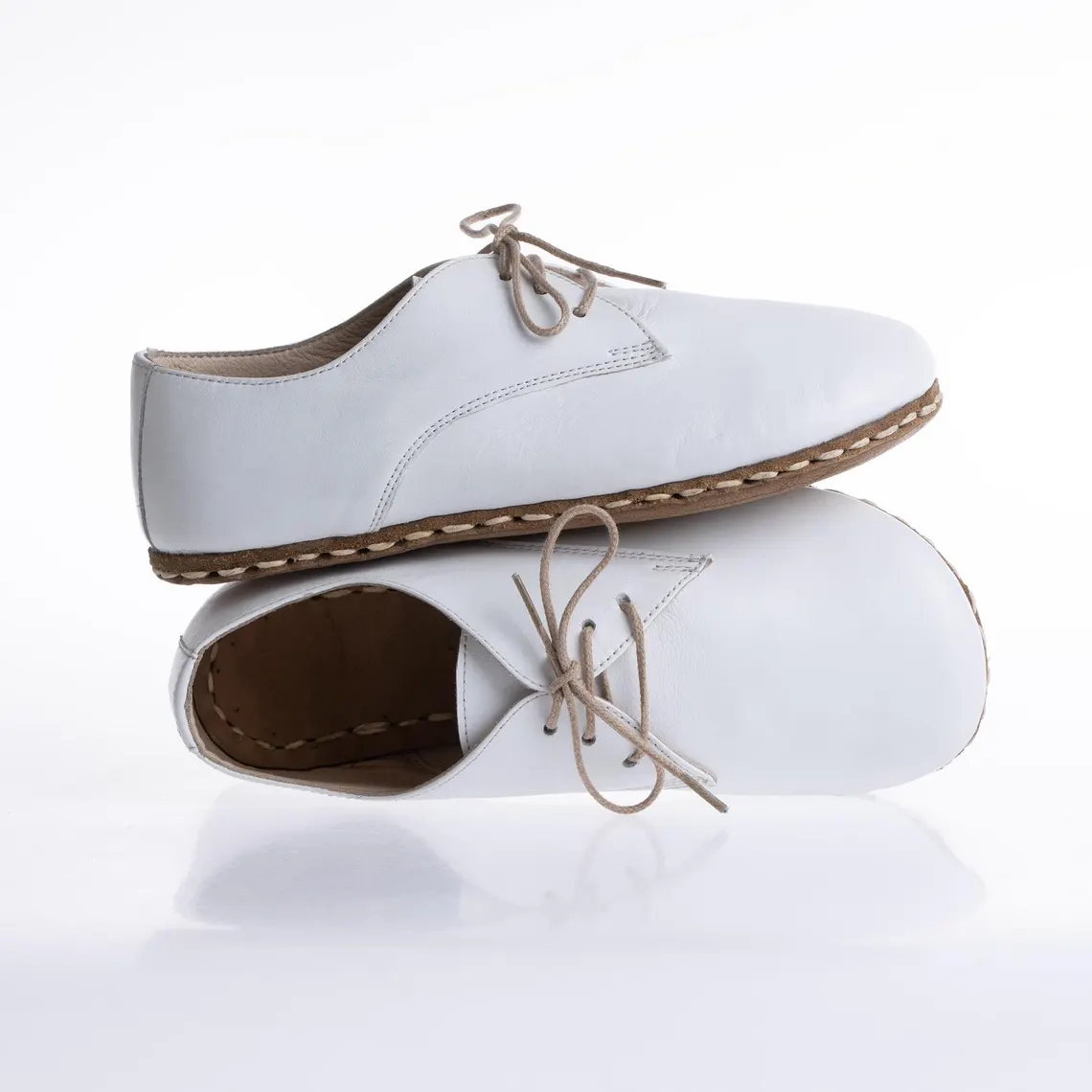Handmade Copper Rivet Grounding White Barefoot Oxford Shoes for Women