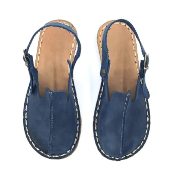 Navy Blue handmade copper-grounded leather sole barefoot sandals combine the natural benefits of barefoot design with the added advantages of copper grounding.