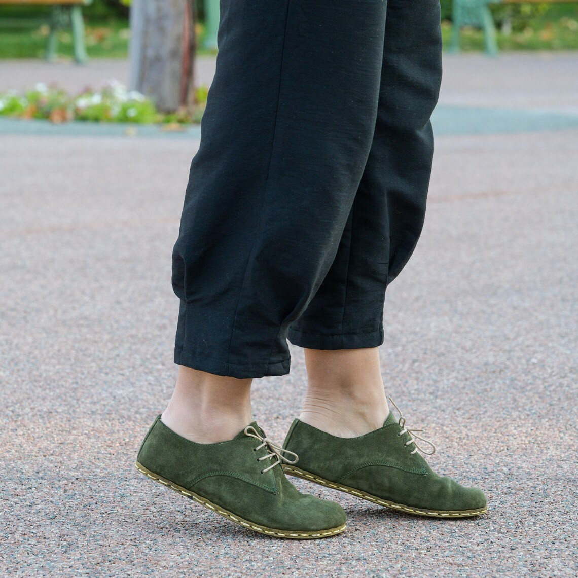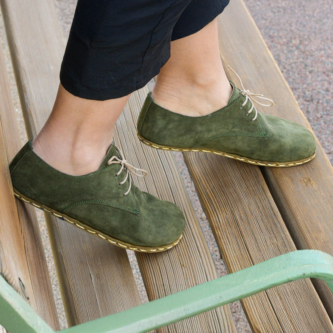 Women’s Green Suede Grounding Barefoot Oxford Shoes