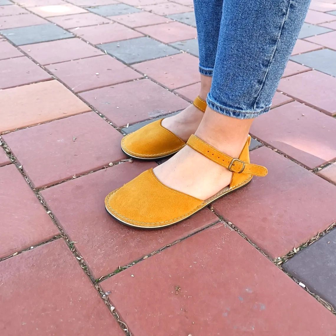 Barefoot Yellow Suede Minimalist Women Sandals